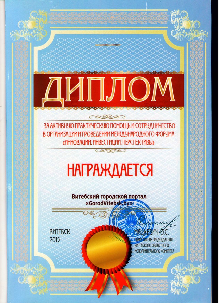 Витебский областной исполнительный комитет наградил дипломами организации, которые непосредственно оказали практическую помощь и участвовали в организации и проведении международного форума «Инновации. Инвестиции. Перспективы».