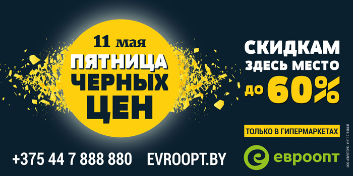 Гипермаркеты «Евроопт» объявляют «Пятницу черных цен»! Скидки 11 мая до 60%!