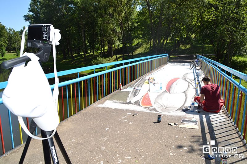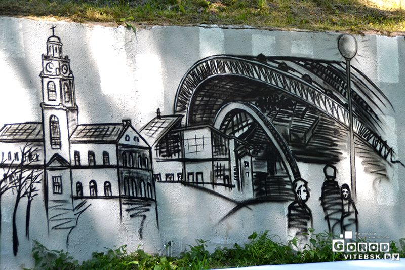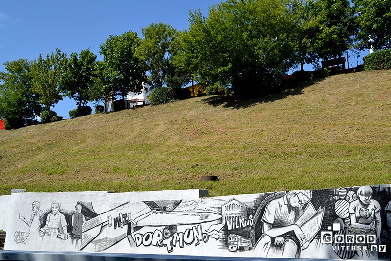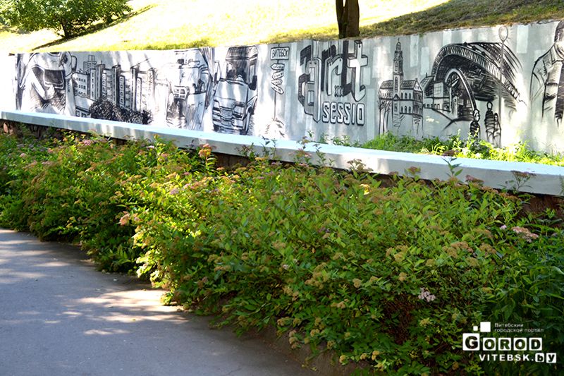 Для художников граффити организаторы выделили несколько площадок на берегу Витьбы в парке Фрунзе, рядом с Концертным залом «Витебск».