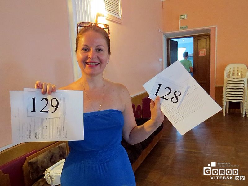 Народу откликнулось не много. До Витебска исполнительный продюсер проекта Екатерина Генкина с оператором проехались уже по 11 городам Витебской области, где посмотрели всего 123 человека. И 25 человек пришли попробовать свои силы в Витебске. В основном это молодые люди из колледжа искусств, но заглянули на конкурс и бывалые, те кто прошёл через проект “Твой шанс” телеканала “Скиф”, например, Ольга Апатова-Матвеева и Наталья Соколова. Ваша покорная слуга (то есть я) тоже решила развлечься и “тряхнуть стариной”. Ой, должна я вам сказать, страшно всё-таки выходить на сцену.