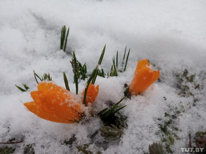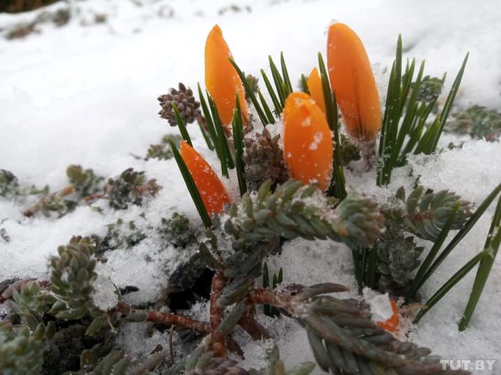 Нежная красота из-под снега. В Витебске в феврале расцвели крокусы