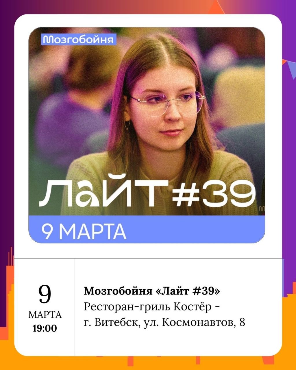 В рамках игры «Мозгобойня Лайт #39» вас ждут лёгкие и увлекательные вопросы. Это идеальный старт для новичков, которые хотят проверить свои знания в непринуждённой обстановке. Мероприятие привлечёт как индивидуальных участников, так и команды, желающие сразиться за звание победителей.