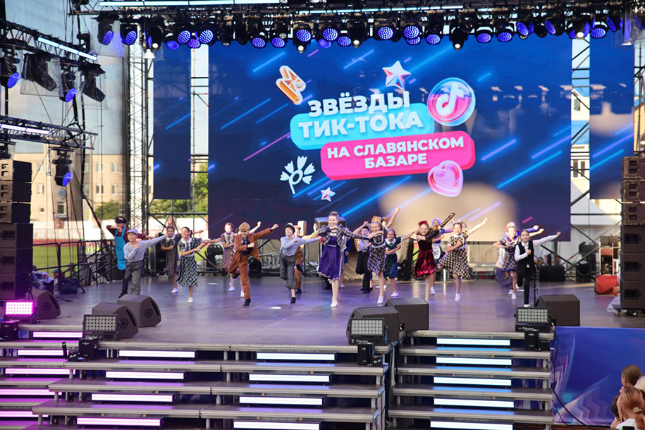 Вечером, 8 июля, на сцене Славянского базара, впервые установленной на ЦСК «Витебский», выступили популярные блогеры и тиктокеры, топовые исполнители, а также лучшие детские и юношеские творческие коллективы, объединенные одним названием «ЗВЁЗДЫ ТИКТОКА НА «СЛАВЯНСКОМ БАЗАРЕ В ВИТЕБСКЕ».