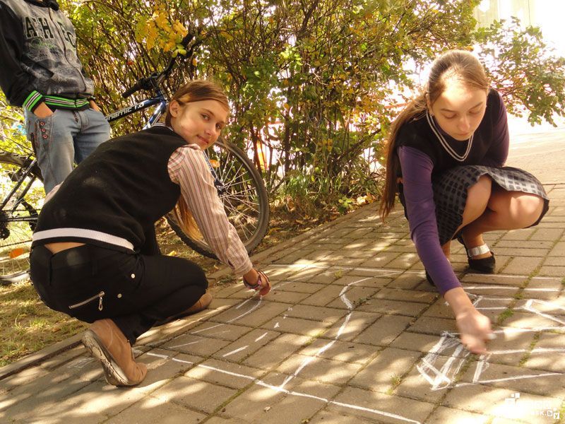 - Конкурс рисунка на асфальте на тему «За безопасность детей на дорогах»;