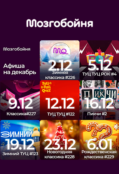 Уже сегодня можно попробовать классику Мозгобойни - продолжаем жаришку игрой с вопросами обо всём и одним тематическим туром про это. А в четверг - Туц Туц Квиз - музыкальная игра с треками всех жанров, стилей и эпох.