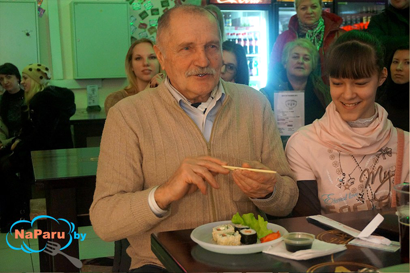 А потом суши-шеф дал возможность готовить всем желающим под его наблюдением. Каждый мог попробовать приготовить, а потом съесть то, что у него получилось – и все это абсолютно бесплатно.