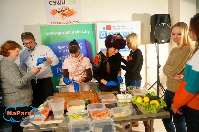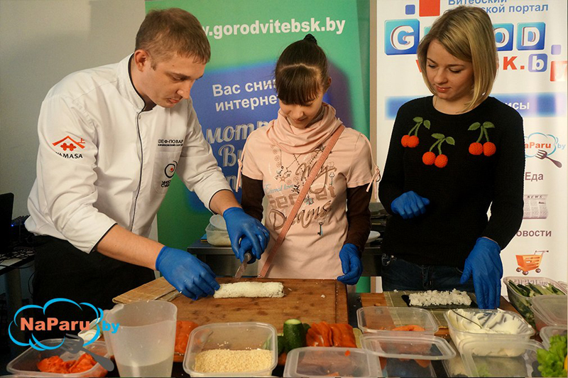 На фуд-корте бизнес-центра "Марко-Сити" в Витебске прошло необычное мероприятие - бесплатный мастер-класс по приготовлению суши в домашних условиях. Проводил мастер-класс победитель суши-баттла Белорусской ассоциации кулинаров, суши-шеф сети суши-баров «Уноси-ка суши» Сергей Ловчиновский.