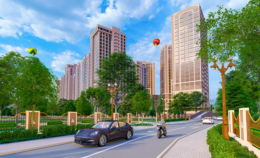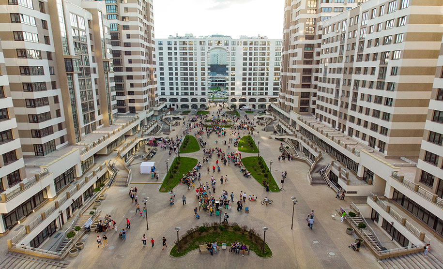 Уникальное решение — в одно из жилых зданий будет встроен детский сад с собственной территорией, проект и концепция которого разрабатываются известным японским архитектором с мировым именем Такахару Тезука. Во дворе домов расположатся безопасные детские и спортивные площадки с современным оборудованием.