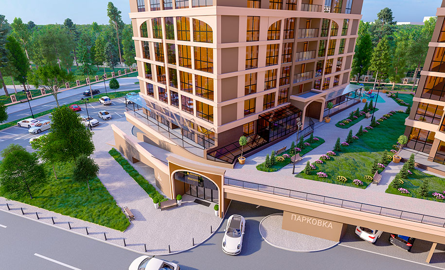 Сегодня приобрести квартиры можно в двух строящихся домах жилого комплекса — дом №1 и дом №2. В том числе есть варианты с открытыми террасами! В доме №1 предусмотрен теплый подземный паркинг, куда можно спуститься прямо на лифте. В доме №2 паркинг будет на первом этаже, а на его экплуатируемой крыше в окружении зелени разместятся площадки для отдыха и детских игр.