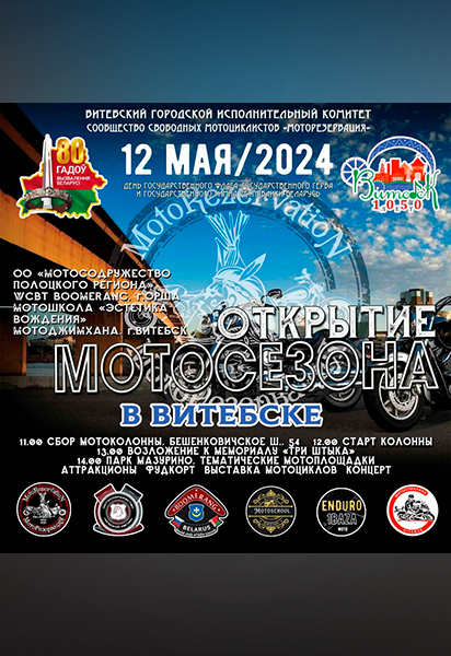 Одним из ярких событий этих каникул станет ОТКРЫТИЕ МОТОСЕЗОНА В ВИТЕБСКЕ в воскресенье 12 мая. Проезд по городу, возложение цветов, тематические мотоплощадки, выставка мотоциклов, концерт, аттракционы, фудкорт. Будет громко!