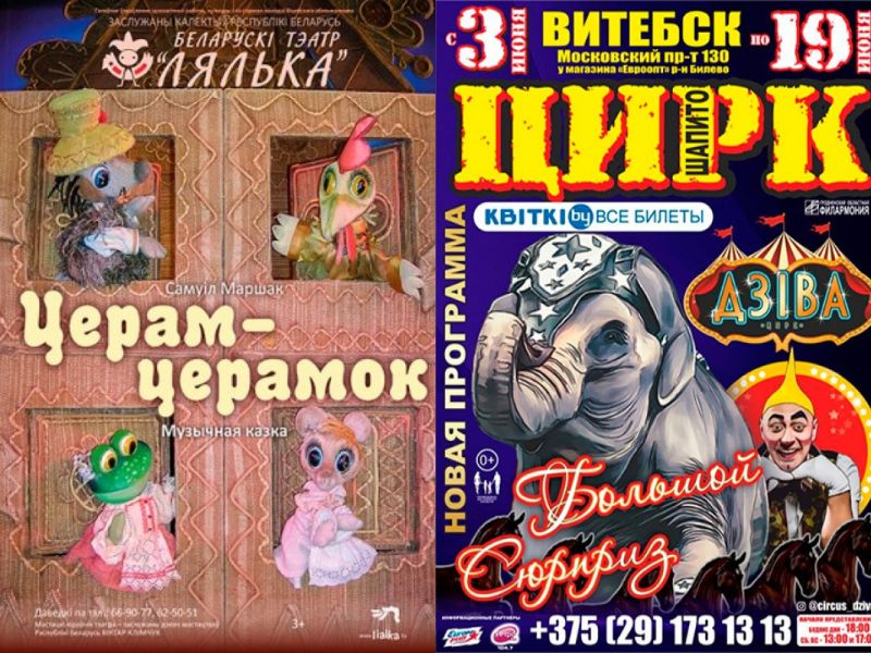 В Витебск приехал цирк DZIVA. Сходите с детьми и получите колоссальное удовольствие! На манеже цирка лауреаты и призёры международных цирковых фестивалей в Москве, Вероне, Будапеште и Берлине! Воздушные гимнасты на трапеции, иллюзионисты, трансформация, мастер метания боевых ножей и топоров, мастера оригинального жанра, дрессировщики диких лошадей, а также пони, дикие кошки, Индийский Слон и многое другое вас ожидает в нашем цирке! Программа оснащена суперспецэффектами: дымовые машины, световые пушки, DJ звук, супер свет! Всё это для вас и ваших детей на манеже цирка шапито DZIVA.