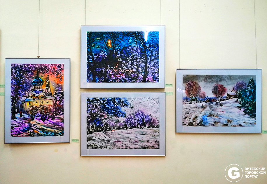 В экспозицию выставки «Сказка четвертого сезона» вошли зимние акварельные пейзажи 2014-2019 годов. На картинах изображены виды таких исторических городов, как Витебск и Полоцк, а также пригороды Витебска: Лужесно, Бороники.