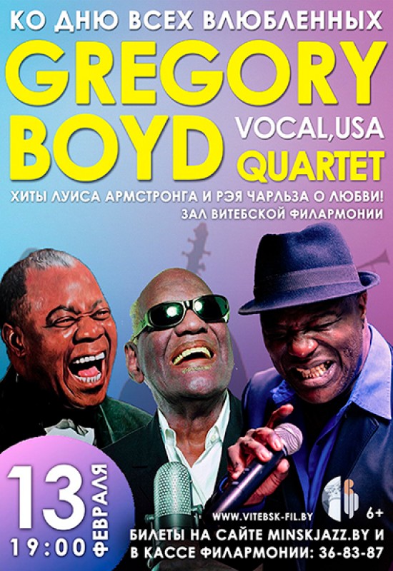 Gregory boyd quartet: хиты Армстронга и Рэя Чарльза ко дню всех влюбленных это просто бальзам на душу. Витебская филармония приглашает желающих послушать мировые хиты 13 февраля в 19.00.