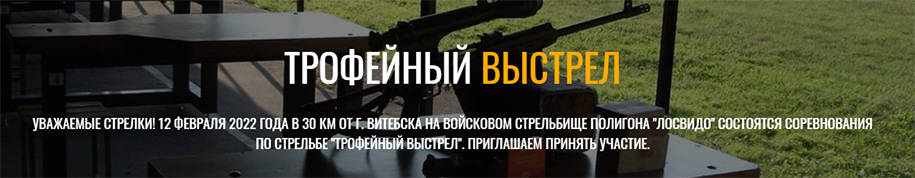Уважаемые стрелки! 12 февраля 2022 года в 30 км от г.Витебска на войсковом стрельбище полигона "Лосвидо" состоятся соревнования по стрельбе "Трофейный выстрел". Приглашаем принять участие.