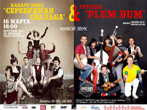 Кабаре-бэнд «СЕРЕБРЯНАЯ СВАДЬБА» и группа «PLUM BUM» – две белорусских команды, которые начинали своё творчество в Витебске, но по разным причинам продолжили его в других городах. За последние 5 лет именно эти две группы стали визитной карточкой театрализованного направления в белорусской музыке. Своё творчество они представляли на сценах Европы и СНГ, где их принимали с огромным удовольствием. И теперь кабаре-бэнд «СЕРЕБРЯНАЯ СВАДЬБА» и группа «PLUM BUM» возвращаются в родной город, чтобы презентовать свои новые программы 16 марта на сцене концертного зала «ВИТЕБСК».