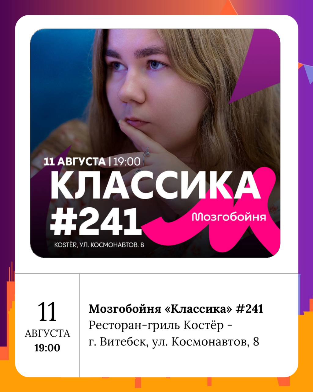 Открыть глаза в понедельник помогает Мозгобойня. Сегодня там Классика #241 - Классика, а 14 августа - Хард #2 - Классика.