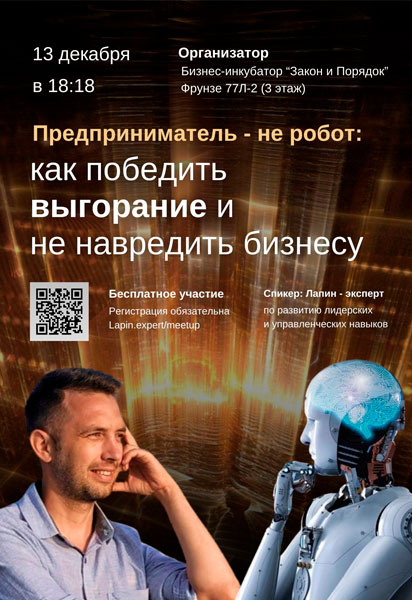 Митап: как победить выгорание и не навредить бизнесу пройдет в среду, в Бизнес-инкубаторе. Участие бесплатно, в целях развития предпринимательства, при поддержки министерства экономики.