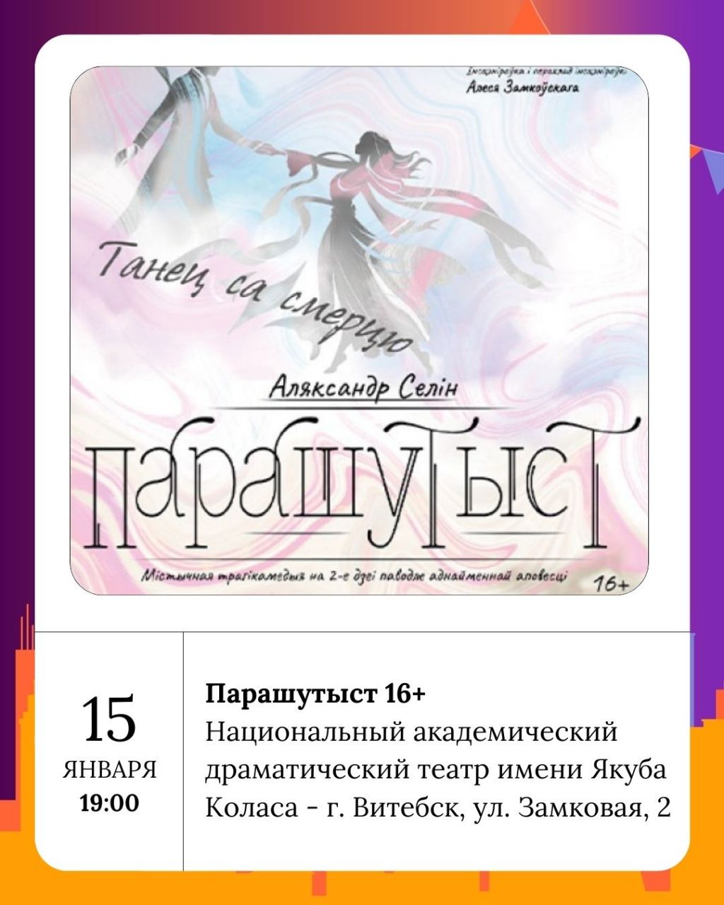 Национальный академический драматический театр имени Якуба Коласа в четверг приглашает на спектакль Парашутыст 16+.