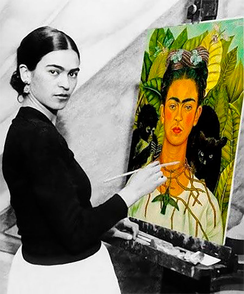 Фрида Кало написала более двухсот картин из них 55 автопортретов. Она не просто изображала свою внешность, все картины богаты деталями из ее жизни: каждый изображённый предмет символичен.