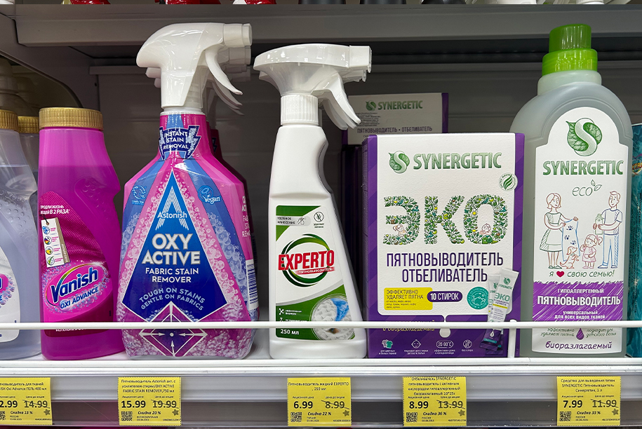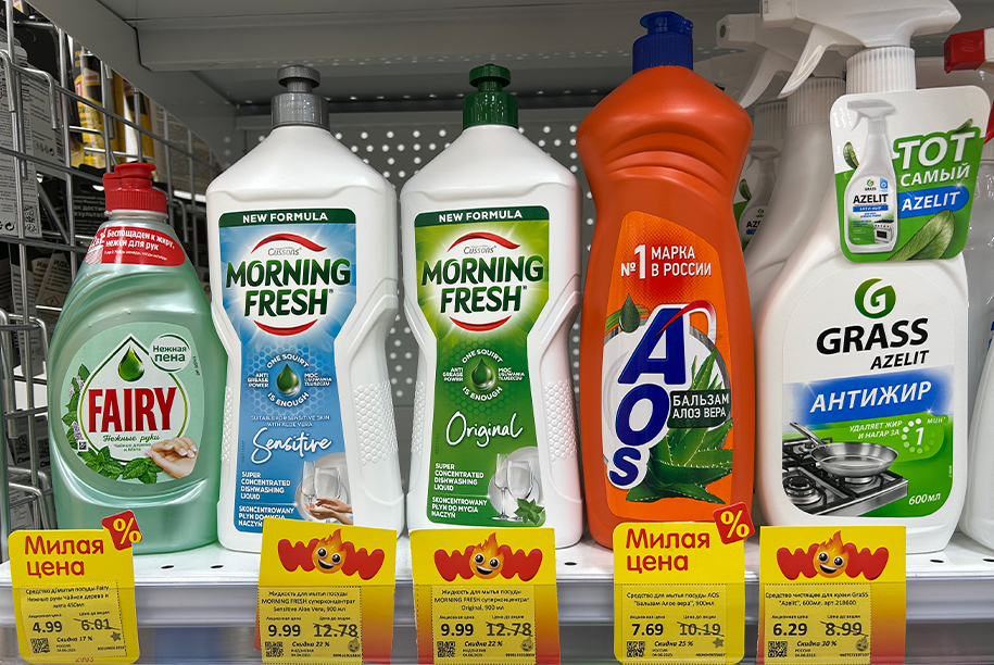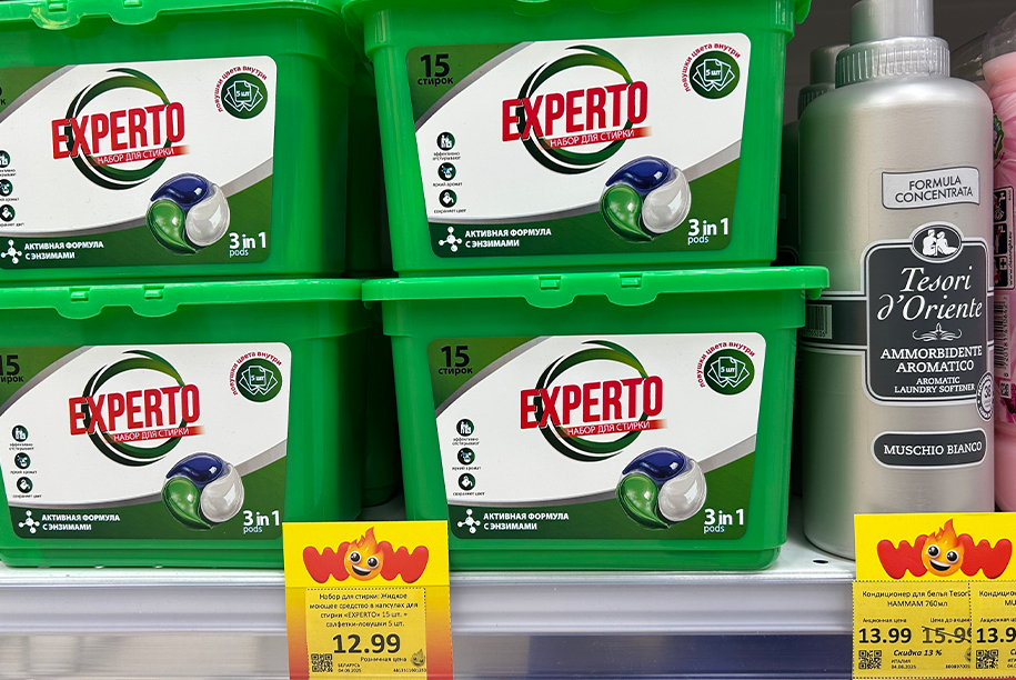 На акции и товары для стирки и уборки. Кондиционер для белья Tesori, 760 мл - 13,99 руб., капсулы для стирки Experto, 12 шт. + салфетки ловушки 5 шт. - 12,99 руб., стиральный порошок «Тайд», 4,5 кг - 26,99 руб. Средство чистящее для кухни GraSS Azelit, 600 мл - 6,29 руб., жидкость для мытья посуды Morning Fresh, 900 мл - 9,99 руб.