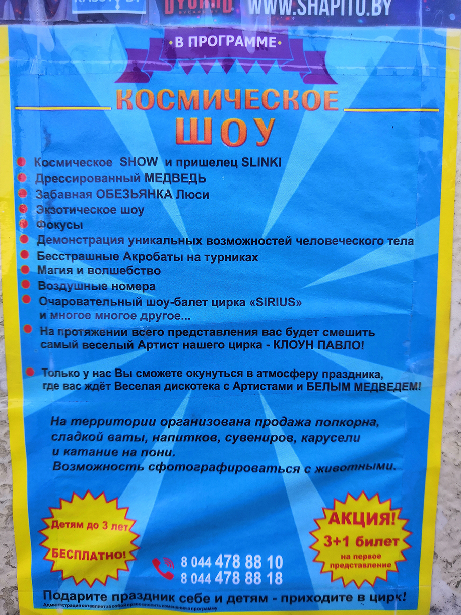 Не будем же раскрывать все карты. Лучше один раз увидеть, чем сто раз услышать. Пробудет цирк в Витебск по 25 октября включительно. С расписанием представлений подробнее можно ознакомиться тут