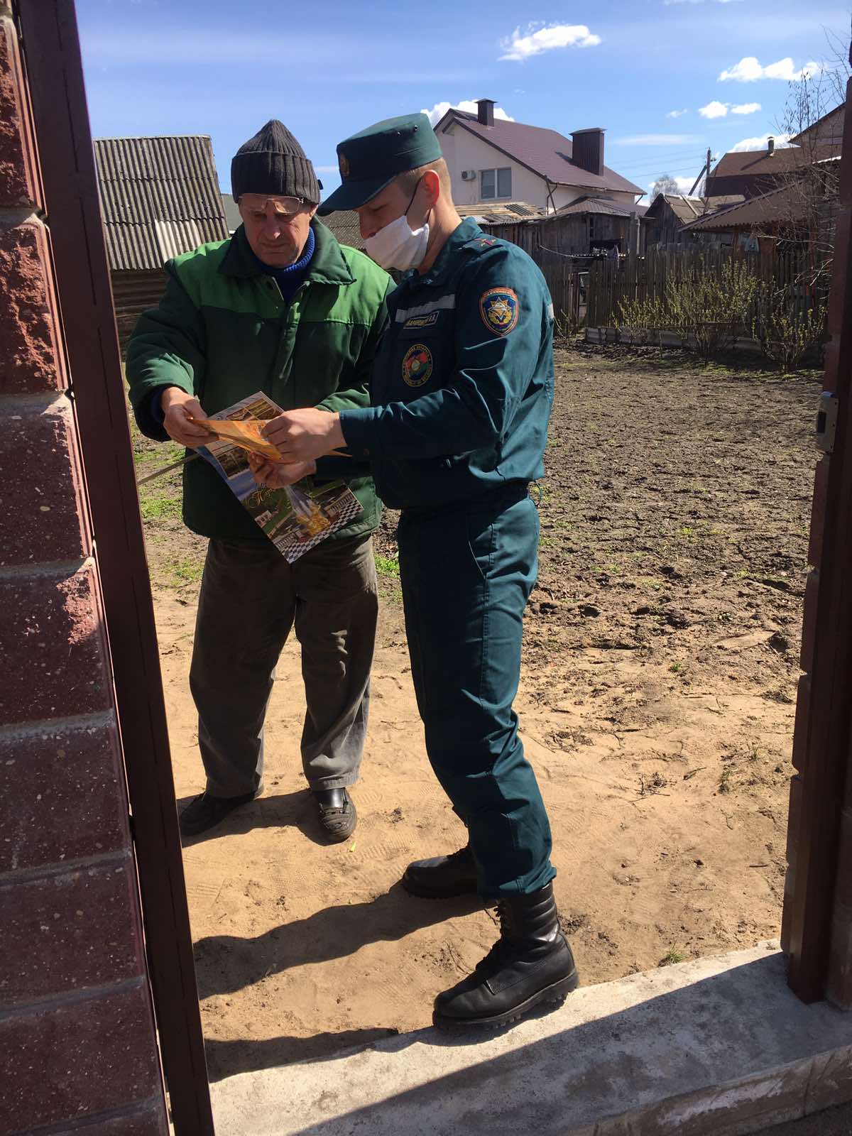 Спасатели вручили хозяевам памятку с правилами безопасности и отправились дальше. Заметили, что в одном из дворов разожжен мангал, и заглянули туда, ведь к мангалам есть особые требования. Проверили, безопасно ли хозяин расположил устройство для приготовления пищи. Все правила были учтены: соблюдено расстояние в 4 метра от построек, над мангалом деревьев не было, пища готовилась под присмотром хозяина.