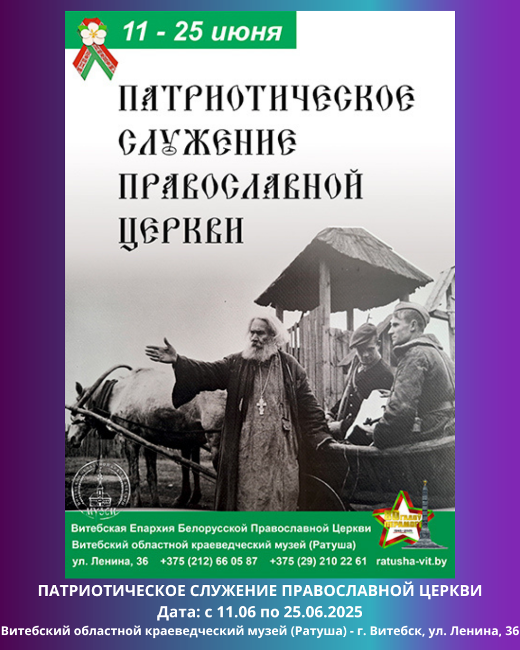 К 80-летию Великой Победы над немецко-фашистскими захватчиками в Витебском областном краеведческом музее (Ратуша, ул. Ленина, 36) открылась выставка, посвящённая патриотическому служению Православной Церкви в годы Великой Отечественной войны.