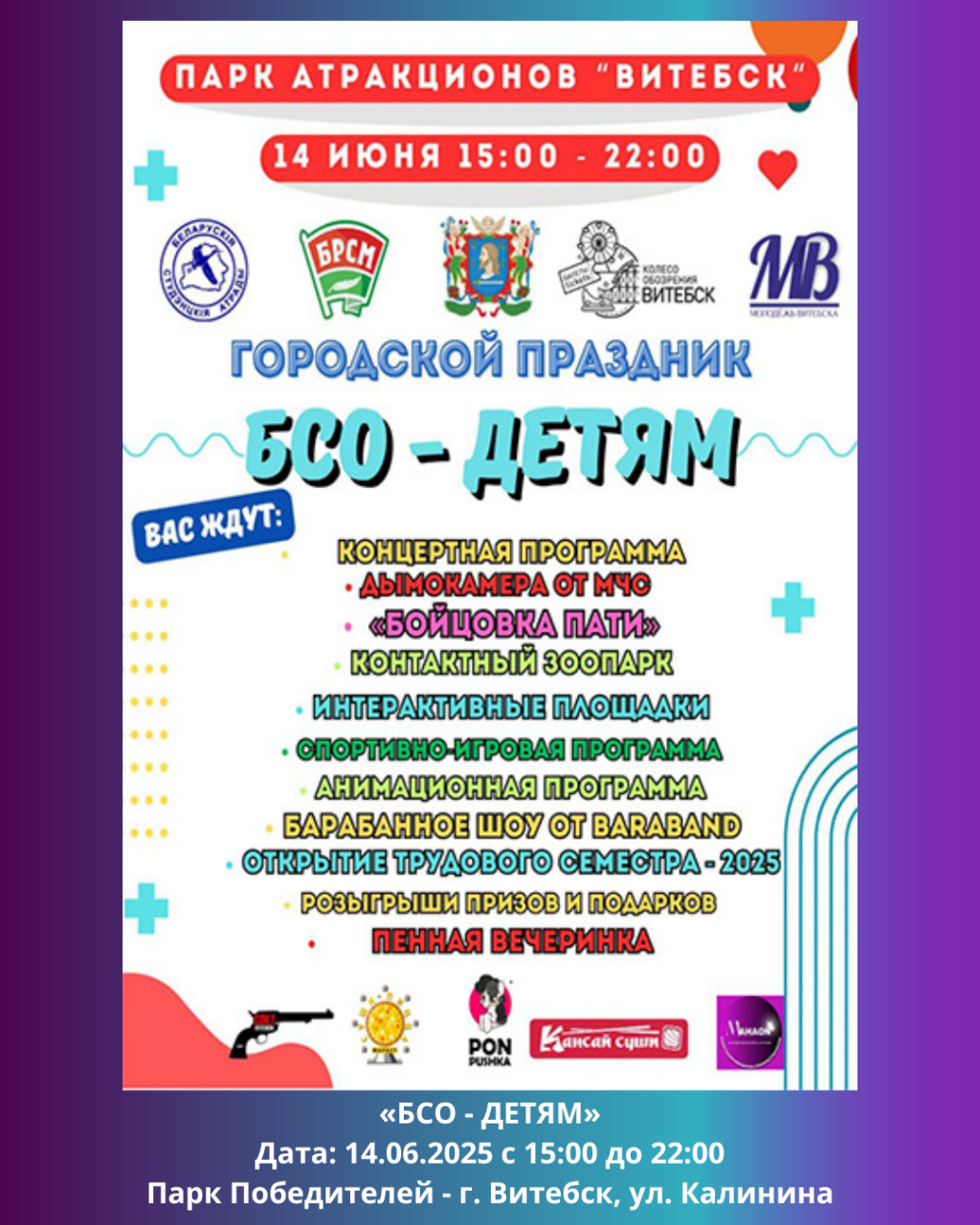 В парке Победителей завтра пройдет городской праздник «БСО - Детям». Стартует праздник в 15:00 и продлится до позднего вечера - 22:00.