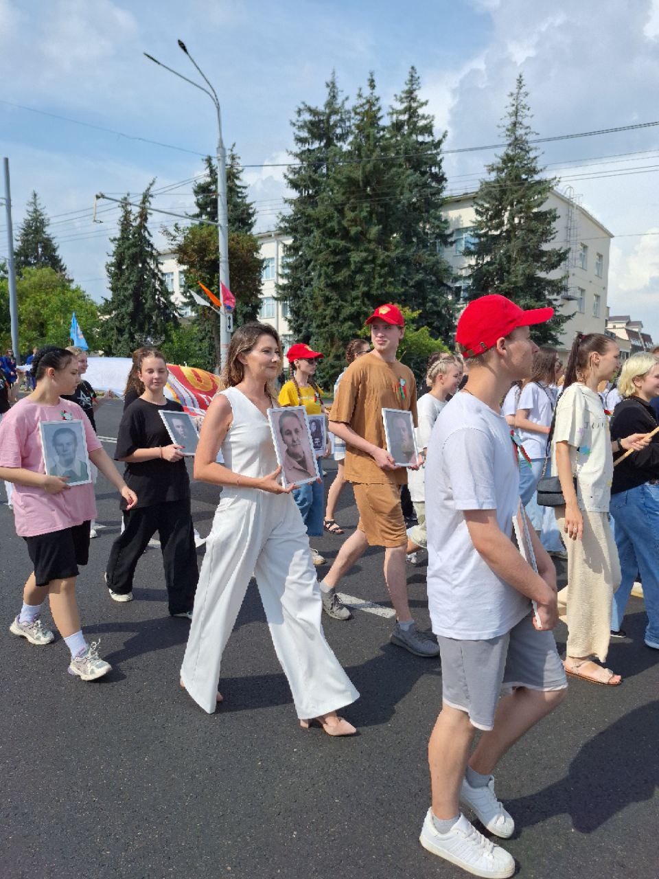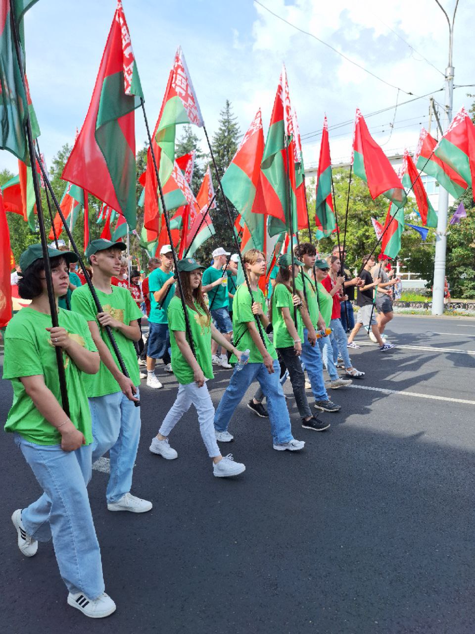 Начался день с марша-парада участников Дней молодежи от мемориального комплекса "Освободителям Витебска - советским воинам, партизанам и подпольщикам" к площадке перед Концертным залом "Витебск".