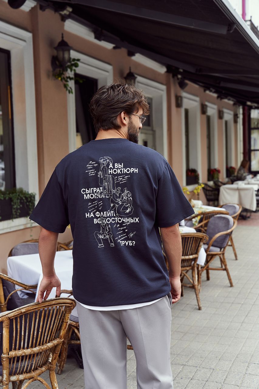 Капсула включает изделия для мужчин и женщин. В коллекции использованы цитаты, портреты, элементы визуального языка, которыми пользовался Маяковский – он был не только поэтом, но автором собственных иллюстраций к текстам. Его творчество – визуальное и ритмичное, именно это ощущение хотелось передать в капсуле.