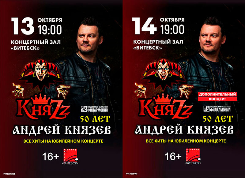 Концертный зал Витебск приглашает 13 и 14 октября на концерт группы «КняZz» 16+.