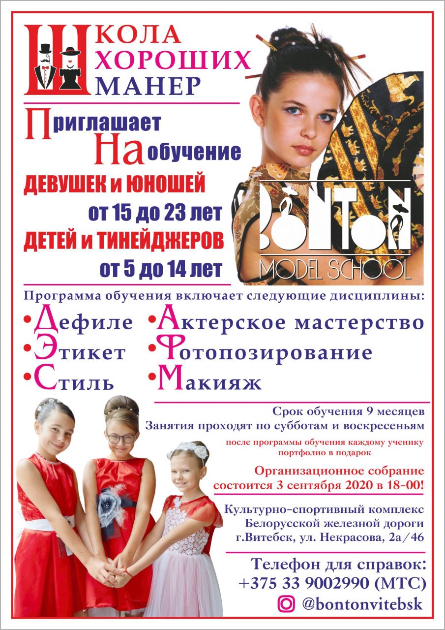 ШКОЛА ХОРОШИХ МАНЕР BON TON ПРИГЛАШАЕТ НА ОБУЧЕНИЕ девушек и юношей от 15 до 23 лет, детей и тинейджеров от 5 до 14 лет.