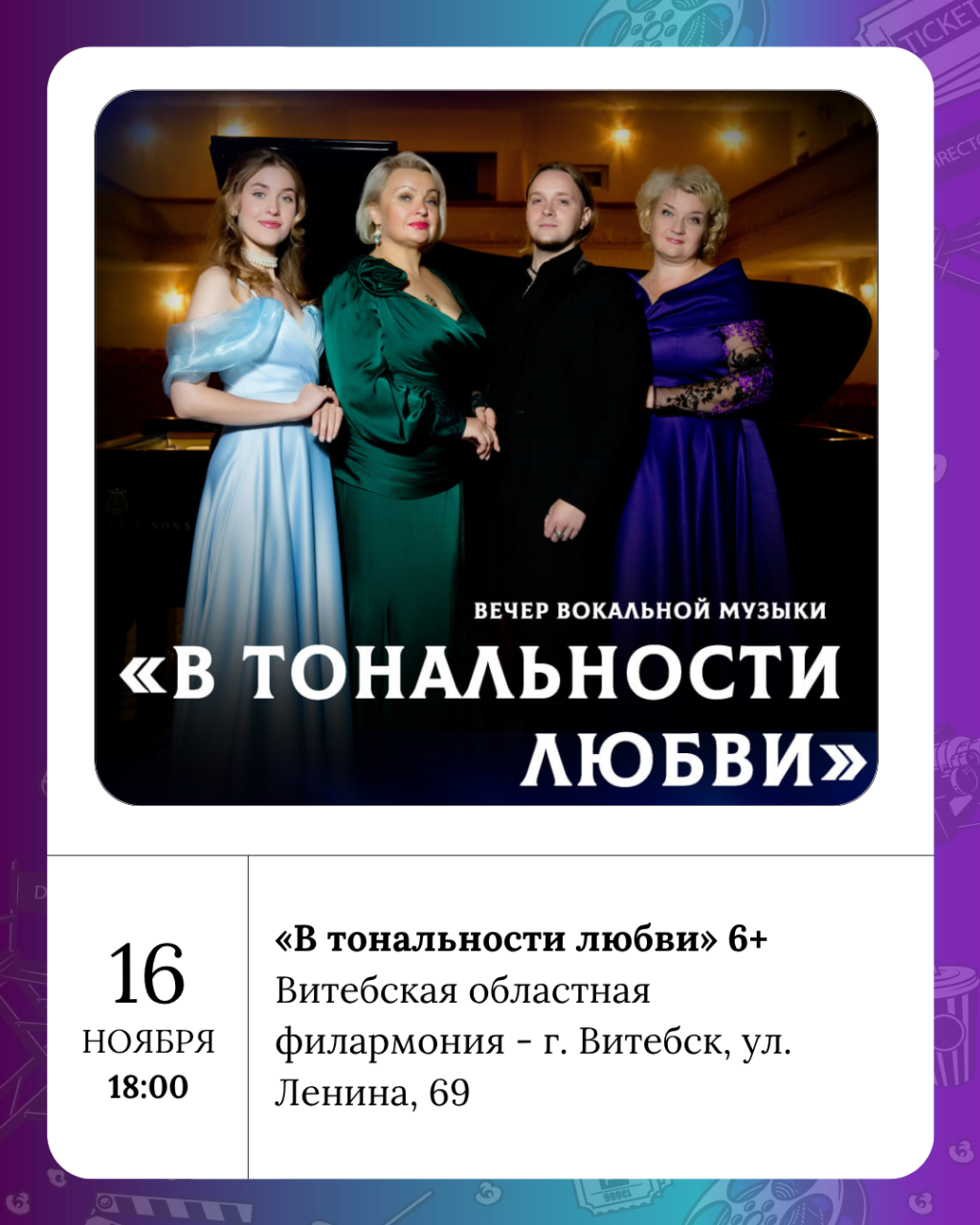 Для взрослых здесь 16 ноября пройдет концерт «В тональности любви» 6+.