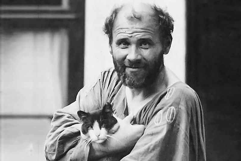 Говорят, Климт очень любил кошек и своего хвостатого друга Катце просто обожал. Катце прощалось многое - шерсть на палитрах и кистях, перевернутые мольберты и погрызенные карандаши, и даже то, что котик бегал по картинам! На обратной стороне одной из картин Климта даже есть отпечаток кошачьей лапки.