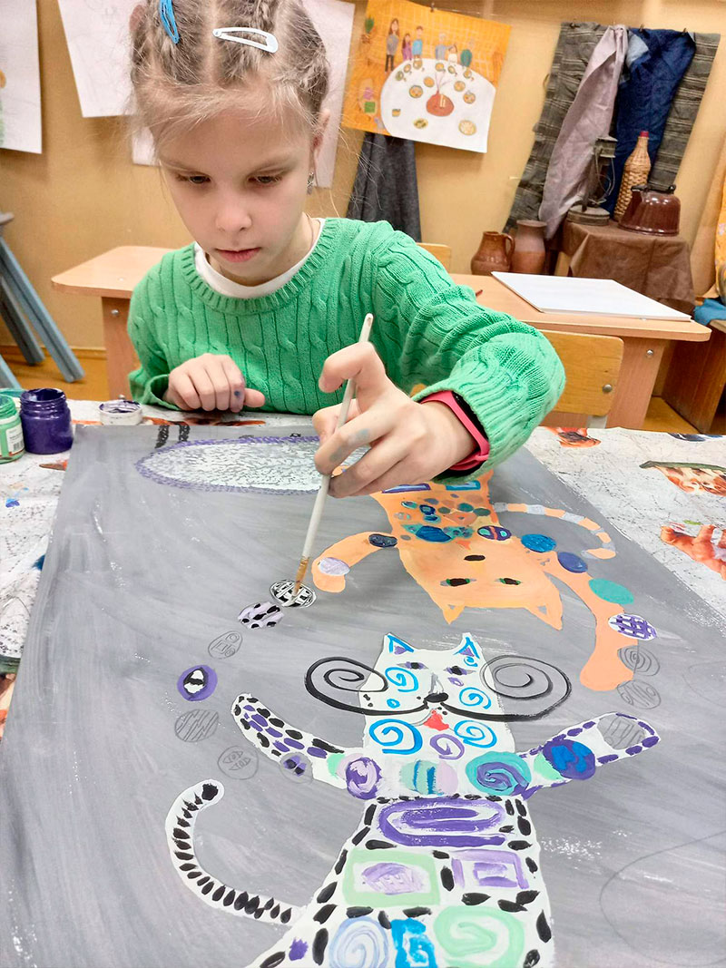 Дети с радостью украсили котов узорами и даже их озвучили.