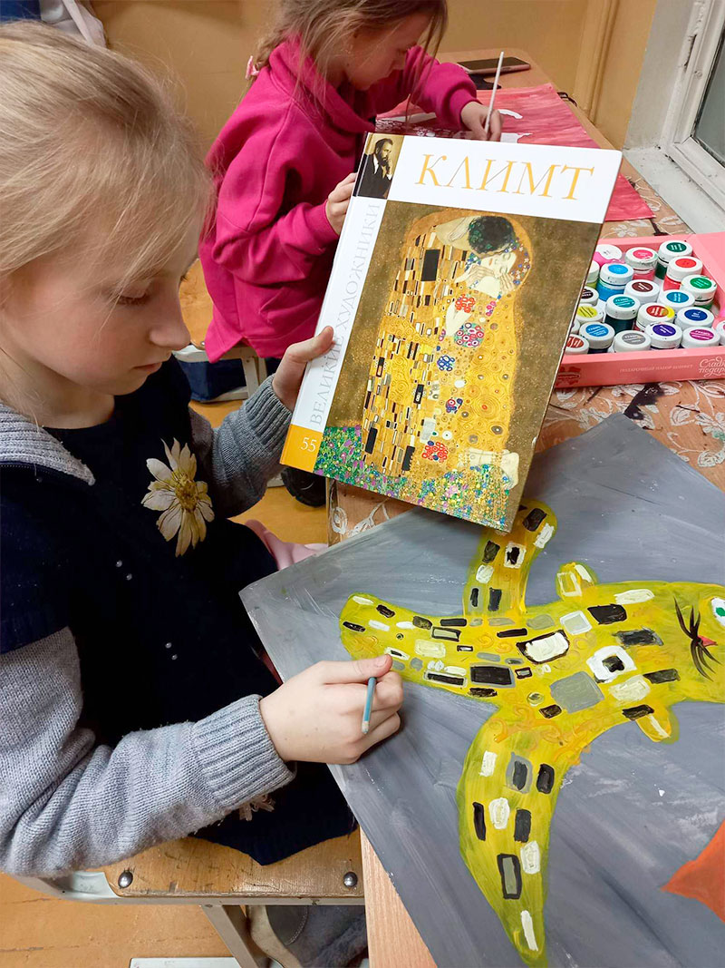 Сивцова Ольга Георгиевна предложила своим ученикам поучиться у художника создавать яркие принты и украсить узорами его любимое животное.