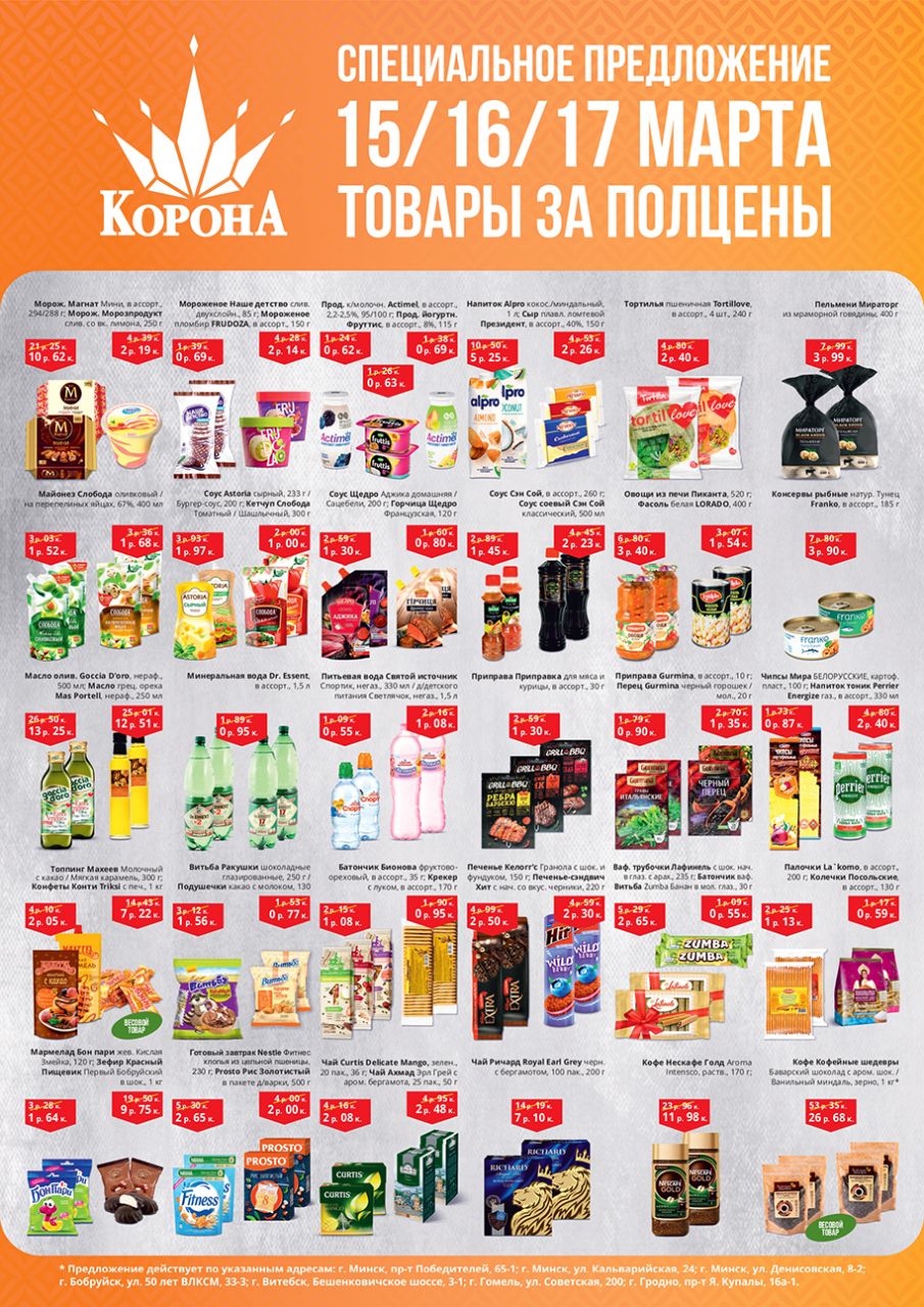 Подробности предложения и адреса проведения уточняйте на korona.by.