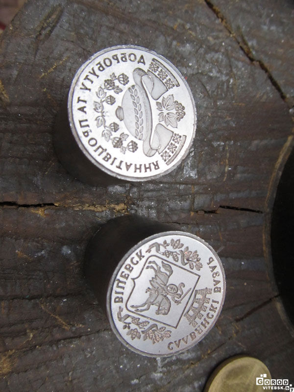 Мастера холодной чеканки из Миргорода недаром славятся на всю Украину – их сильные руки одним точным ударом молота превращают кружок металла в сувенирную монету. Это техника еще допетровской эпохи, немеханизированная: два сменных клише для «орла» и «решки» устанавливаются вручную, закрывая с двух сторон заготовку. В Витебске из предлагаемых мастерами шести эскизов наиболее популярны герб Витебска с надписью «Славянский базар», хлеб-соль и герб Украины с пожеланием мира и достатка вашей семье.