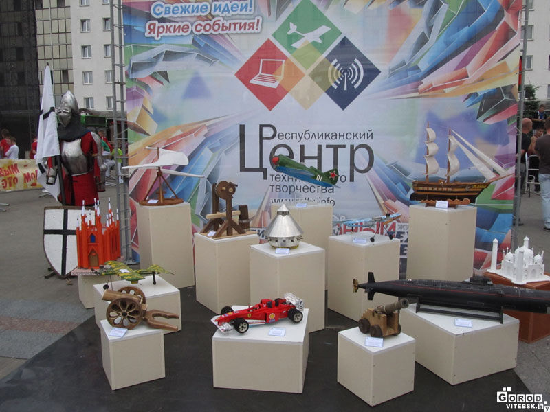 А на следующий день на этом же месте уже ослепляла богатством «Копилка талантов». Здесь можно было попасть на выставку любителей электроники и автоматики «ТехноГрад», потрогать и сфотографироваться на фоне ретро-автомобилей областного клуба «Автовитязь», поучаствовать в конкурсах байкеров, познакомиться с ребятами из минского клуба исторической реконструкции «Корона Запада», послушать волынку. Или пообщаться с бойцами брестского военно-исторического клуба «Гарнизон». Или восхититься смелостью и мастерством трейсеров, отличной физической формой ребят из движения стрит воркаут. Или попросить участника проекта «100 идей для Беларуси», художника из Речицы Анатолия Щёголева нарисовать на руке, лице, словом, любой части тела символ «Славянского базара» – василек.