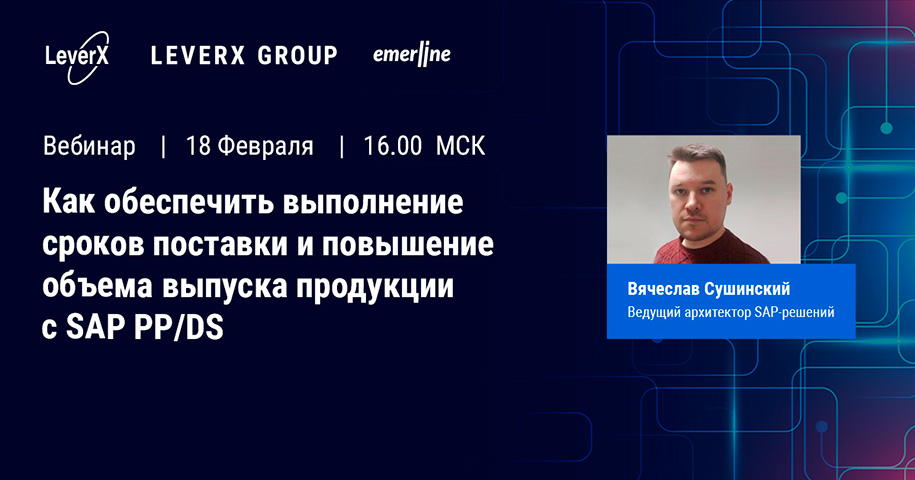 18 февраля LeverX Group проведет бесплатный онлайн-вебинар по планированию производственных процессов (PP/DS) на базе современной ERP-системы SAP S/4HANA.