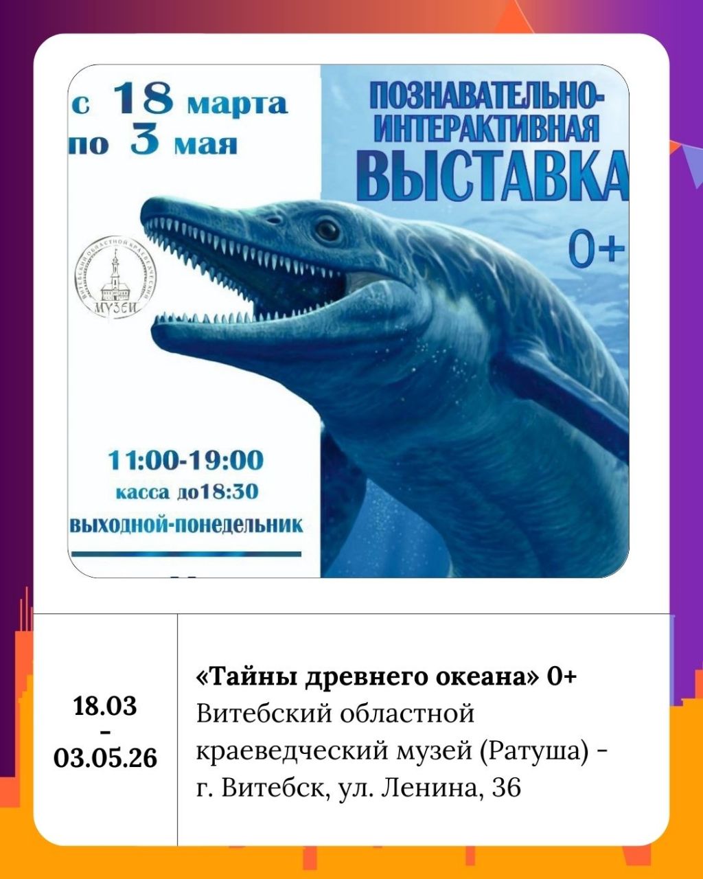Витебский областной краеведческий музей (Ратуша) откроет двери выставки «Тайны древнего океана» (0+). Это отличная возможность для всей семьи узнать о загадочном мире, существовавшем миллионы лет назад.