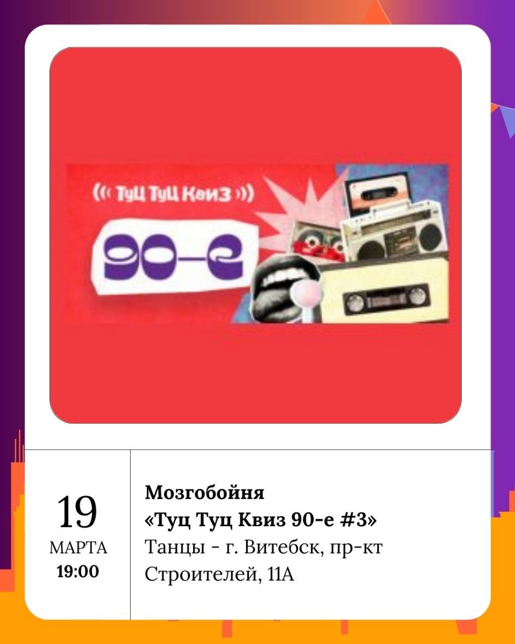 Вечер начнется с музыкальной игры «Туц Туц Квиз «90-е #3», где можно будет проверить свои знания хитов и событий того яркого десятилетия.