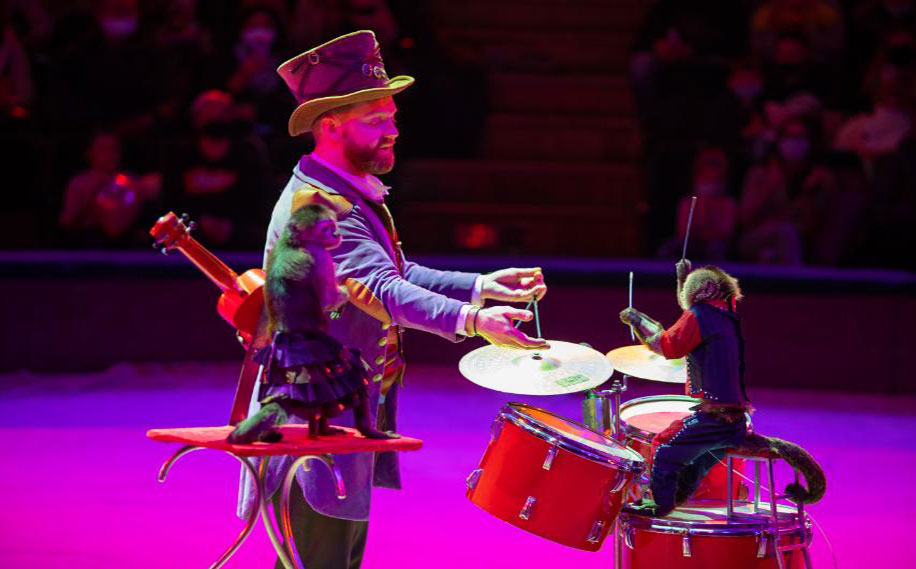 Покорит зрителей удивительный номер с участием милых и смышленых обезьянок-капуцинов. Чудесные маленькие артисты мастерски играют на музыкальных инструментах, демонстрируют вокальные данные, ездят на велосипеде и балансируют на зеркальном шаре!