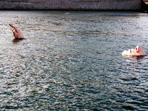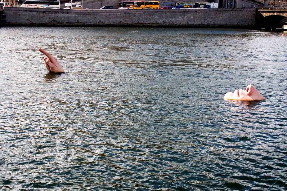 Человек в воде - одна из многих уникальных статуй в Стокгольме, Швеция. Вы можете найти его перед Зданием Парламента, плавающим на воде и вызывающим действительно странное чувство. Скульптура составлена из двух плавающих частей – одна часть изображает лицо человека (область носа и рта), а другая представляет его руку, указывающую на что-то из воды. Установка вызывает впечатление, будто гигантский человек тонет, и трудно действительно определить, нуждается ли он в помощи, или нет.