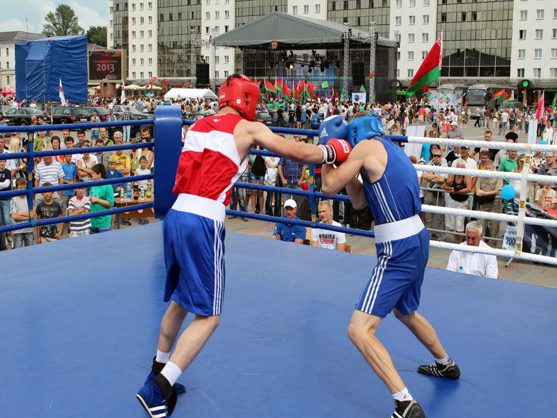 Боксерский ринг был установлен на площади Победы под открытым небом.