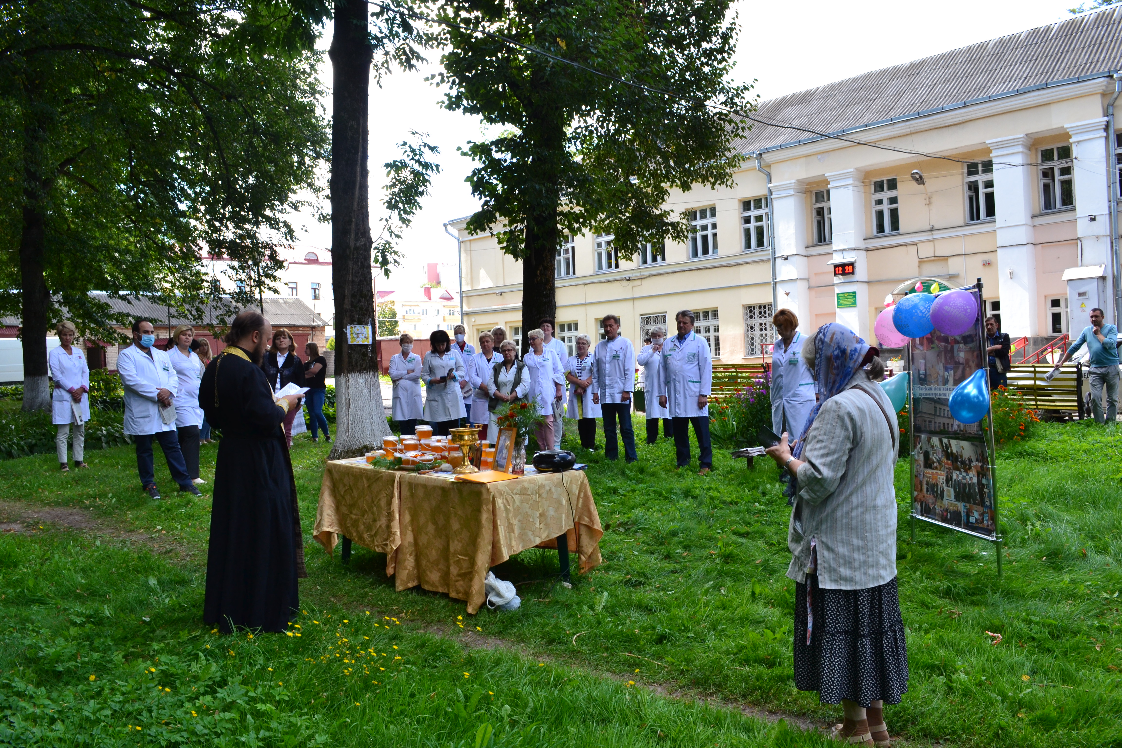 Обряд освящения меда нового сбора провели на Медовый Спас в Витебском областном клиническом центре дерматовенерологии и косметологии. Его с молитвой отслужил в дворике амбулаторно-поликлинического отделения отец Павел, настоятель церкви Силуана Афонского.