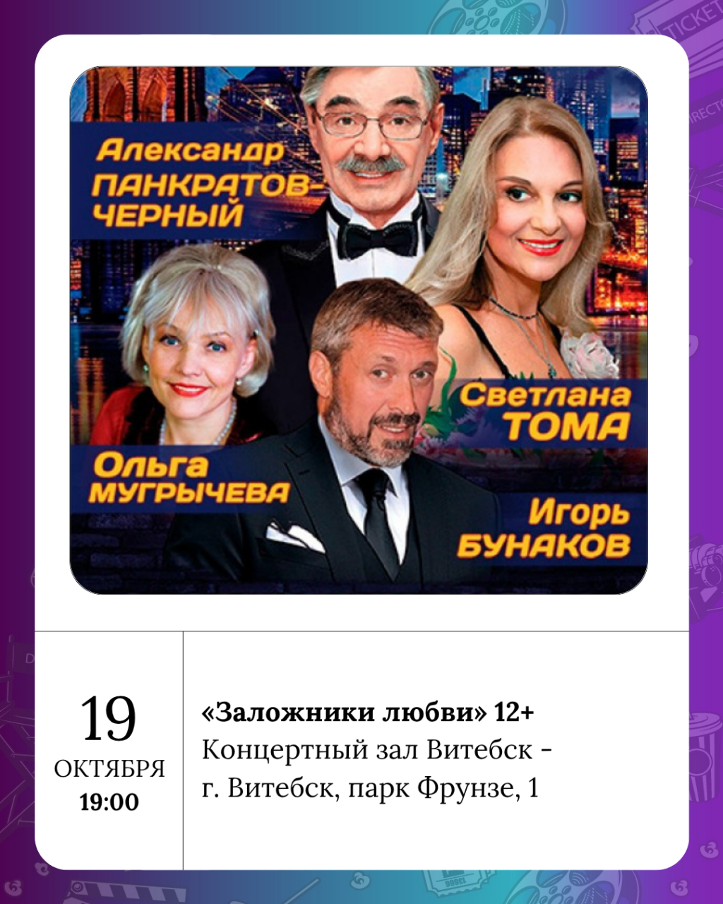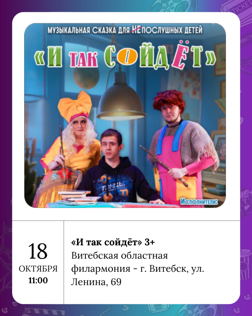 Пятница — это когда кофе вкуснее, мысли легче, а планы на выходные начинают танцевать в голове под саундтрек «а может, сходим куда-нибудь?». Витебск, как всегда, не подводит: афиша полна событий, от которых хочется надеть любимый шарф, взять друзей под руку и выйти в город.