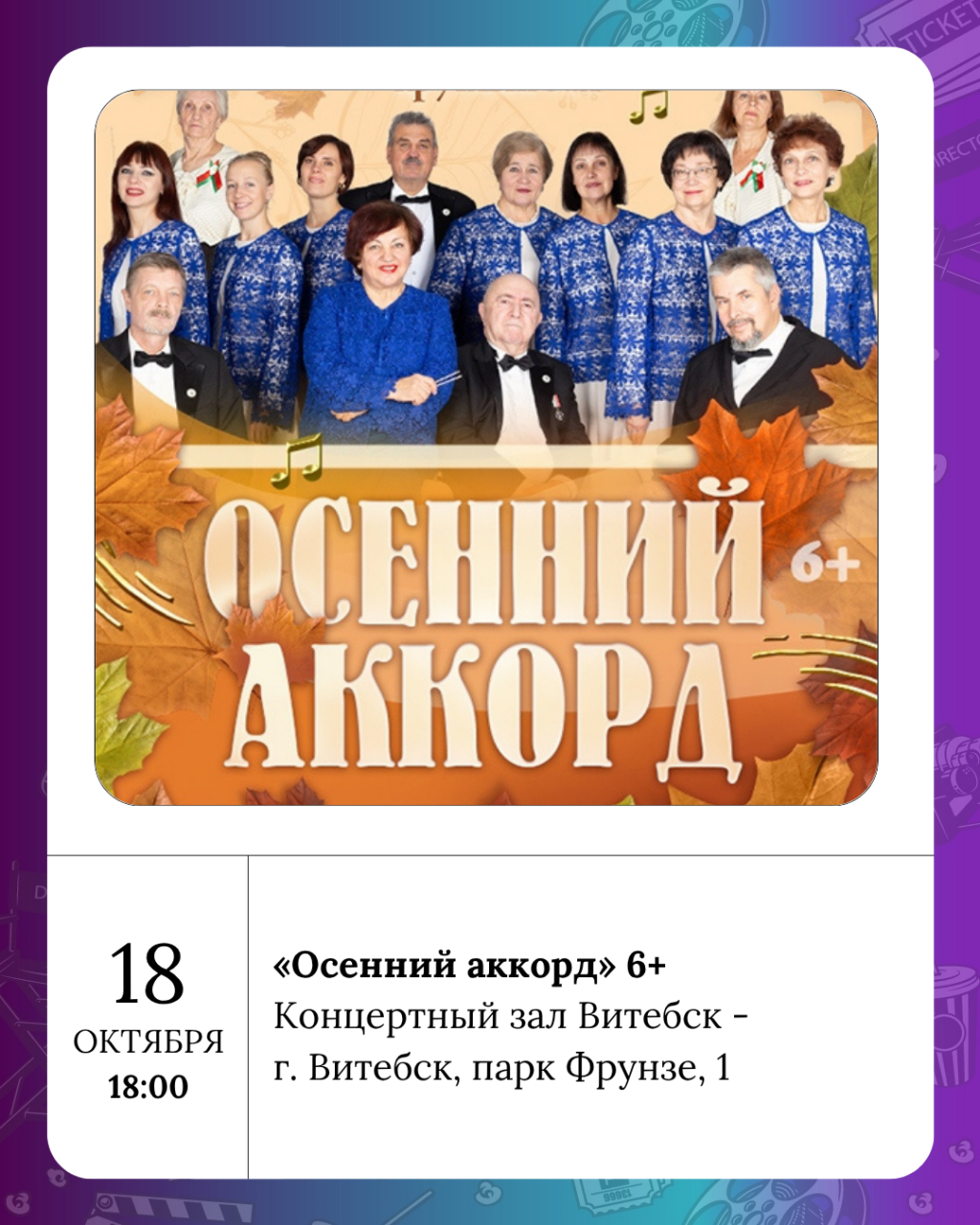 Народный камерный хор Центра культуры «Витебск» приглашает всех на концерт-воспоминание с трепетным названием «Осенний аккорд», приуроченный ко Дню матери. Праздник состоится 18 октября в 18:00 в концертном зале «Витебск».