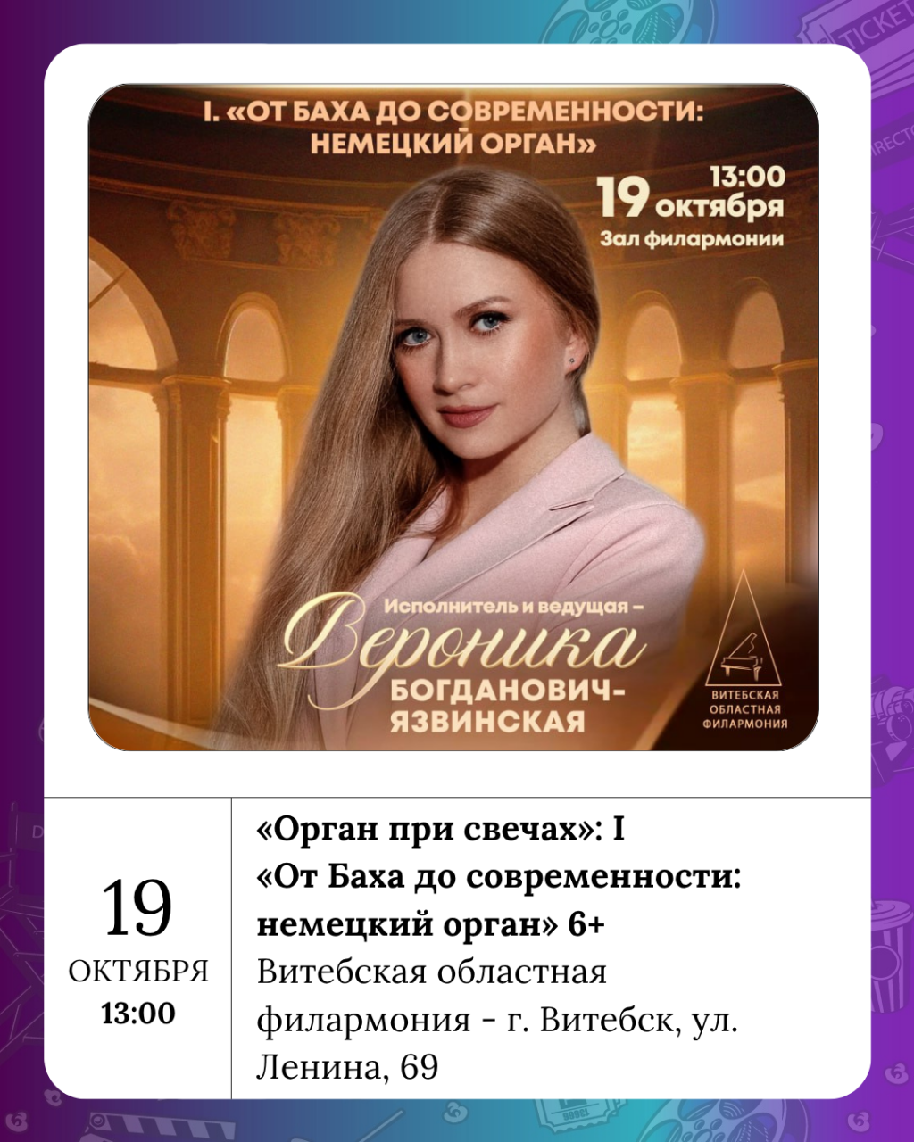 «Орган при свечах»: I «От Баха до современности: немецкий орган» 6+ можно послушать в филармонии 19 октября.