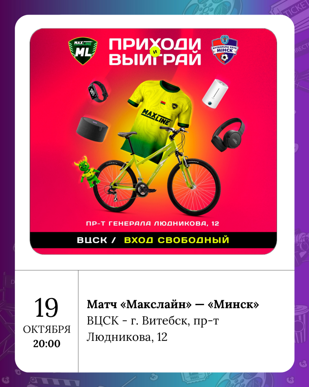 Матч «Макслайн» — «Минск» пройдет в этот день на стадионе центрального спортивного комплекса ФК "Витебск". Болеем за наших!
